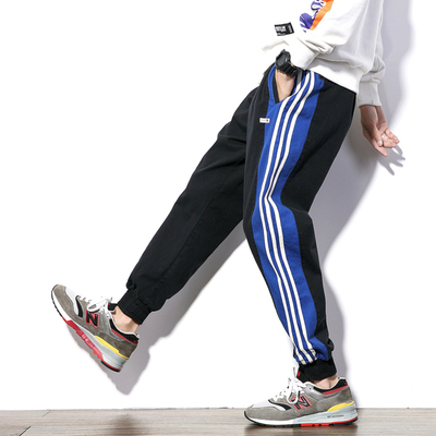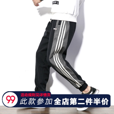 Quần lửng sọc mùa thu quần skinny nam rộng kích thước rộng chân quần âu phiên bản Hàn Quốc của xu hướng quần nam - Quần thể thao quần the thao nam ống rộng Quần thể thao