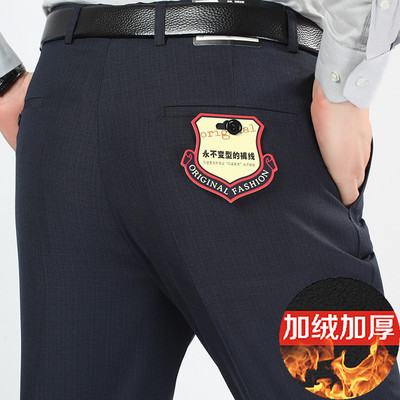 Quần nam mùa đông dày cộng với nhung dày trung niên kinh doanh ống thẳng miễn phí nóng lỏng đầm đen phù hợp với quần nam quần âu trắng