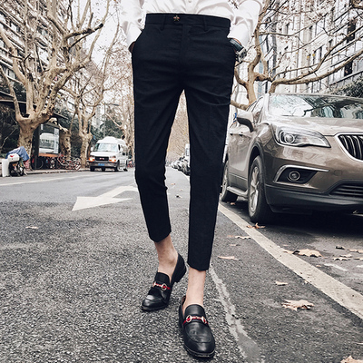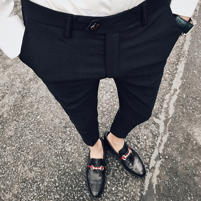 Quần ống rộng nam 9 điểm mỏng manh Phiên bản Hàn Quốc của xu hướng quần hoang dã mùa hè mỏng phần quần âu nam - Suit phù hợp mẫu quần tây nam đẹp 2020 Suit phù hợp