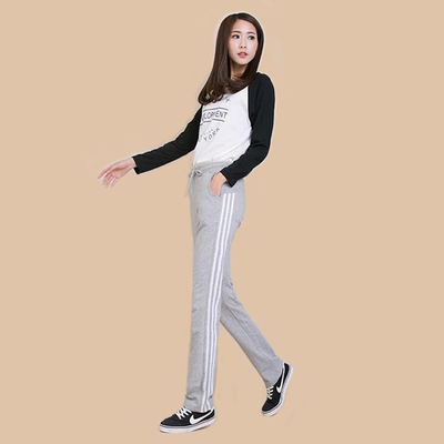 Quần thể thao nữ quần cotton phần mỏng lỏng lẻo quần thẳng từ mỏng thoáng khí chạy mùa xuân và mùa thu ba chiều bảo vệ thanh quần - Quần thể thao quần tập yoga Quần thể thao
