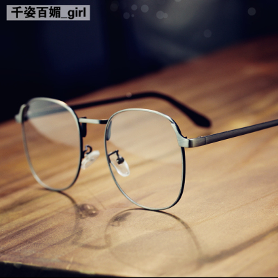 Quạt văn học retro lớn hộp phẳng gương nữ hộp mỏng khung kim loại kính khung nam dài mặt kính khung vuông kính cận thời trang