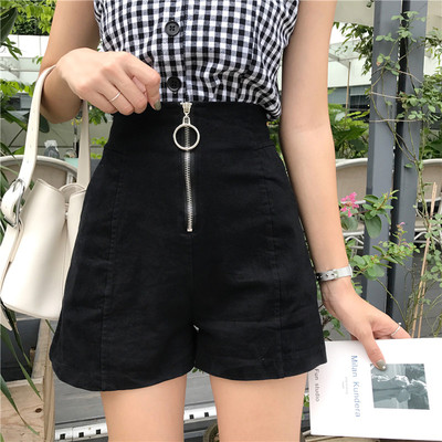 Retro hàn quốc chic gió hoang dã mỏng cao co giãn Một từ quần chân rộng mùa hè dây kéo quần giản dị quần short nữ quần short ren nữ đẹp