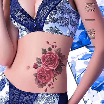 Rose nhãn dán hình xăm hình ảnh lớn không thấm nước nữ lâu dài sexy bụng mổ lấy thai dán che khuyết điểm cơ thể sơn ảnh hình dán xăm mini