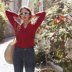 [] Rouje Pháp retro xù V-cổ khóa phần ngắn cao eo dài tay áo len 1801-17 áo khoác len nữ dày