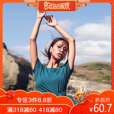 Runaway Loli Màu rắn cổ tròn thể thao Áo thun nữ thời trang thoáng khí top lỏng chạy yoga ngắn tay áo phông anta