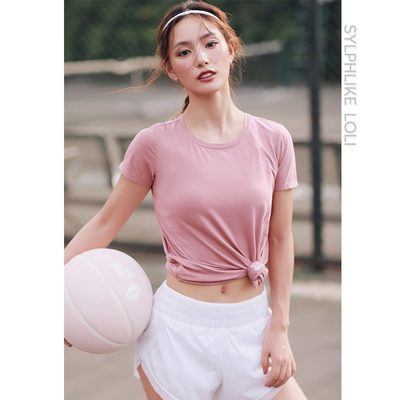 Runaway Loli Màu rắn cổ tròn thể thao Áo thun nữ thời trang thoáng khí top lỏng chạy yoga ngắn tay áo phông anta Áo phông thể thao