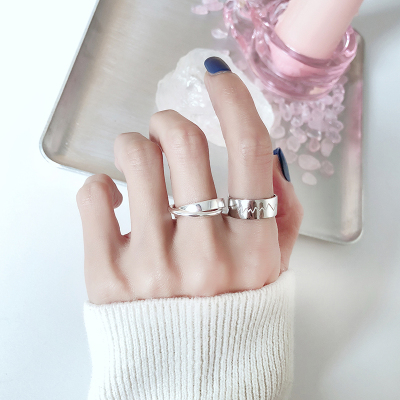 S925 sterling bạc Châu Âu và Mỹ tính khí đôi nhẫn nhẫn nhẫn thủy triều đơn giản khép miệng chỉ số nhẫn ngón tay - Nhẫn nhẫn cặp vàng 18k Nhẫn