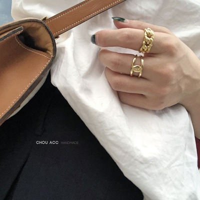 S925 sterling bạc INS retro gió lạnh đơn giản kim loại nặng chuỗi vàng CHIC ngón tay đeo nhẫn nữ nhẫn kim cương