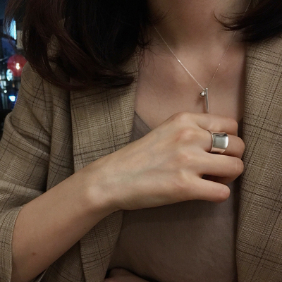 S925 sterling bạc mở nhẫn phụ nữ Nhật Bản và Hàn Quốc đơn giản mịn màng chải yên ngựa nhẫn trang sức Hàn Quốc - Nhẫn nhẫn đôi vàng tây Nhẫn
