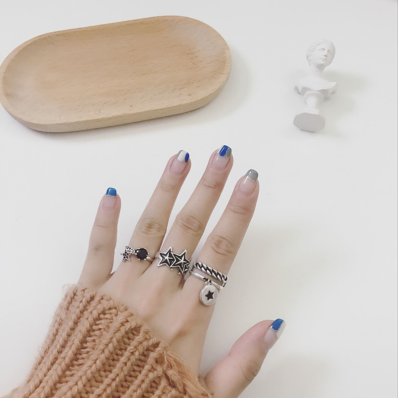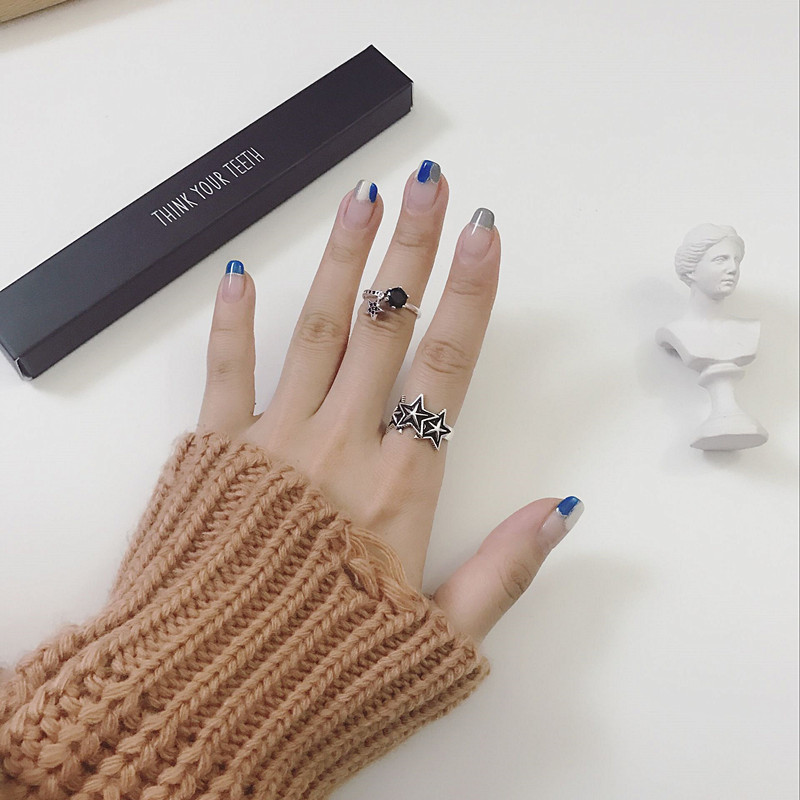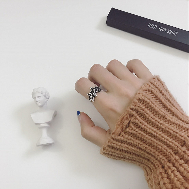 S925 sterling bạc ngón đeo nhẫn nữ hipster Nhật Bản và Hàn Quốc đơn giản tua năm cánh sao retro Thái bạc nhẫn nam và nữ trang sức nhẫn bạch kim