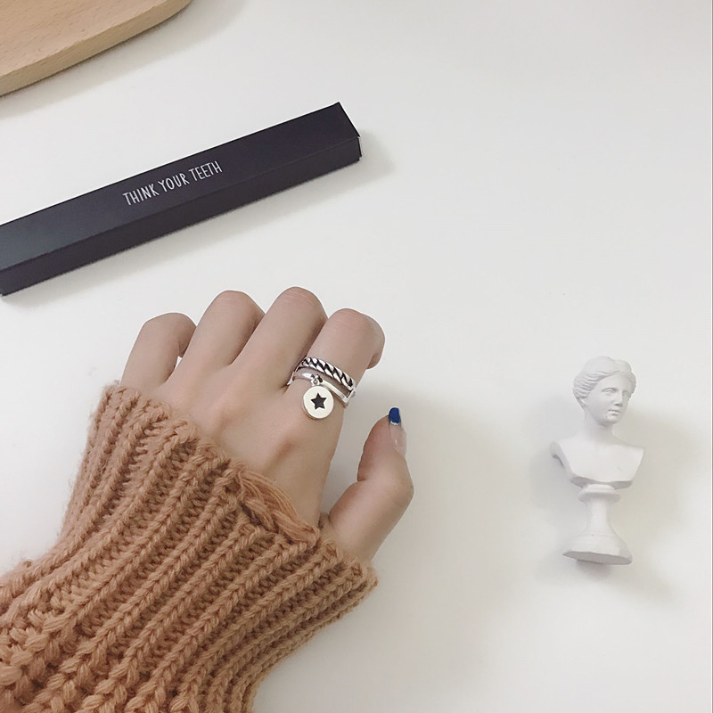 S925 sterling bạc ngón đeo nhẫn nữ hipster Nhật Bản và Hàn Quốc đơn giản tua năm cánh sao retro Thái bạc nhẫn nam và nữ trang sức nhẫn bạch kim Nhẫn