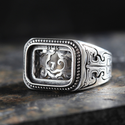 S925 sterling bạc nhẫn trống hỗ trợ mới hình tròn rồng vuông mẫu bạc trang trí mở tùy chỉnh cặp đôi khảm ngọc lam - Nhẫn nhẫn cưới đẹp