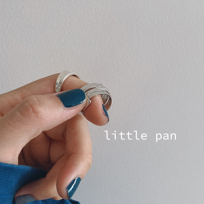 S925 sterling bạc Nhật Bản và Hàn Quốc phong cách tối giản khí chất nhiều lớp bóng lõm xu hướng cá tính mở vòng - Nhẫn nhẫn nam vàng 18k Nhẫn