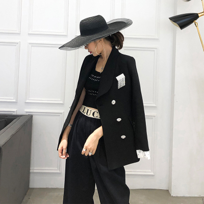 SALLY CHỌN Châu Âu trạm nhỏ phù hợp với nữ áo khoác màu đen 2018 đầu mùa thu mới khoan nóng phù hợp với mỏng vest nữ trung niên