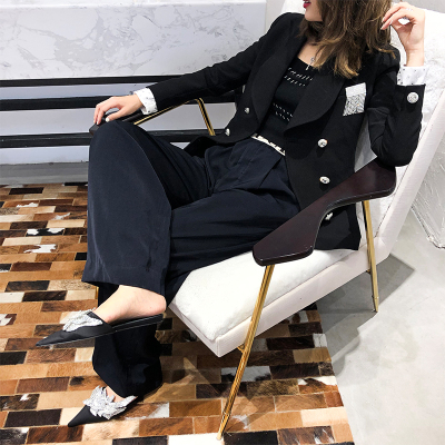 SALLY CHỌN Châu Âu trạm nhỏ phù hợp với nữ áo khoác màu đen 2018 đầu mùa thu mới khoan nóng phù hợp với mỏng vest nữ trung niên Business Suit