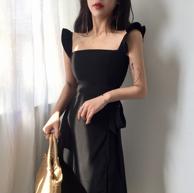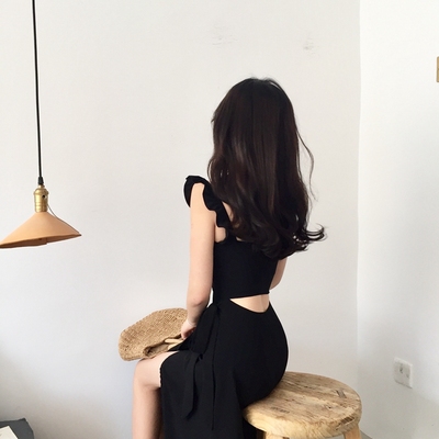 Sang trọng gió retro Hàn Quốc phiên bản của mùa hè mới hoang dã thiết kế ý nghĩa của phần dài với một khe hở trở lại cổ tích váy nữ váy vặn eo