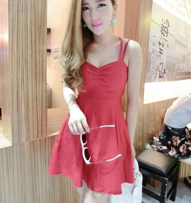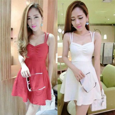 Sexy hộp đêm công chúa váy công chúa không tay dây đeo váy mùa hè ngực thấp dễ thương fluffy một từ váy ngắn dây - A-Line Váy các kiểu váy đầm chữ a