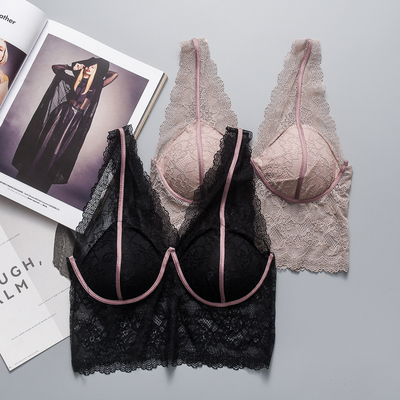 Sexy V-cổ ren yếm nữ ngắn đoạn không có vòng thép chạm đáy vẻ đẹp trở lại ren quấn ngực tập hợp ống đồ lót - Ống áo ngực không gọng