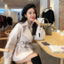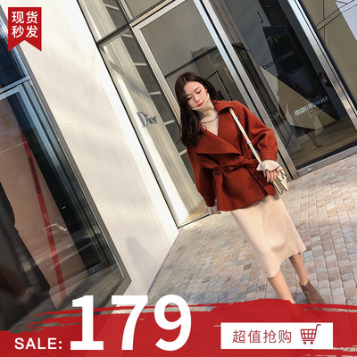 Shanshan mô hình khí đơn giản với eo trở lại xếp li ve áo ngắn áo hai màu sắc áo khoác nỉ nữ Áo khoác ngắn