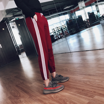 Shore phi thể thao quần ống rộng chạy yoga quần đỏ quần đào tạo phụ nữ quần gió adidas Quần thể thao