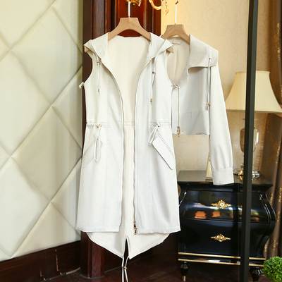 Siêu hiệu quả về chi phí! ! Mua một bộ, có 3-4 loại phương pháp mặc! Áo khoác ngắn + áo gi lê áo gi lê áo trùm đầu áo gi lê áo khoác bò nữ Trench Coat