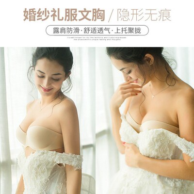 Siêu mỏng quây cup lớn áo ngực chống trượt ống trên nửa cốc đồ lót vô hình đám cưới ngực lớn nhỏ nhỏ liền mạch dán ngực Đồ lót