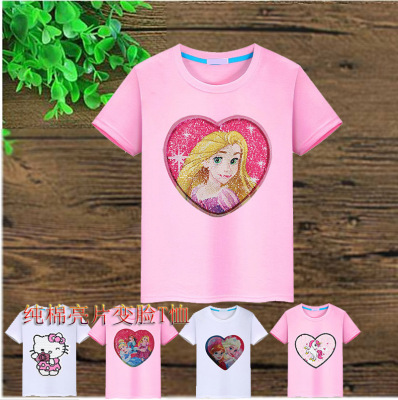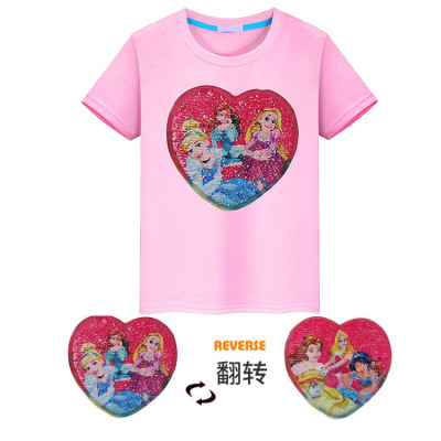 Snow White Children Ice Romance Children Family Wear Womens Rung rung nữ màu ngắn Áo thun ngắn tay - Trang phục dành cho cha mẹ và con váy trễ vai mẹ và bé Trang phục dành cho cha mẹ và con