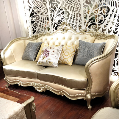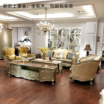 Sofa phòng khách bàn cà phê kết hợp tủ TV ba mảnh đặt đồ nội thất sofa châu Âu sâm banh vàng kết hợp bộ bàn ghế thông minh Bộ đồ nội thất