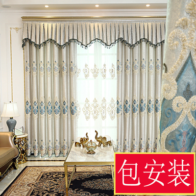 sợi tùy chỉnh sang trọng cao cấp phong cách châu Âu rèm cửa phòng ngủ phòng khách sang trọng thêu rèm cửa sàn đến trần rèm cửa hoàn thành - Phụ kiện rèm cửa thanh treo rèm cửa sổ bằng gỗ Phụ kiện rèm cửa