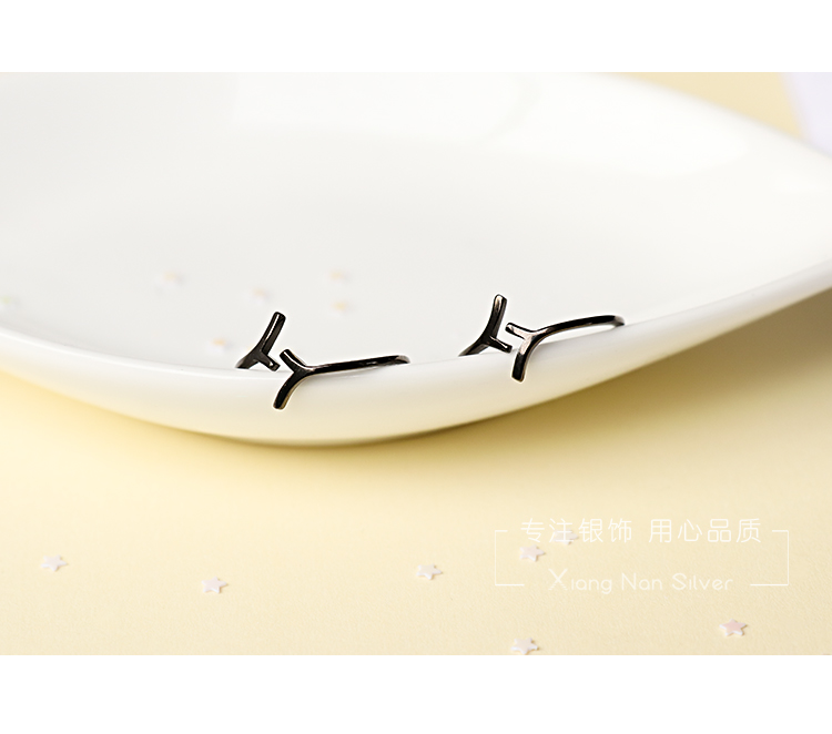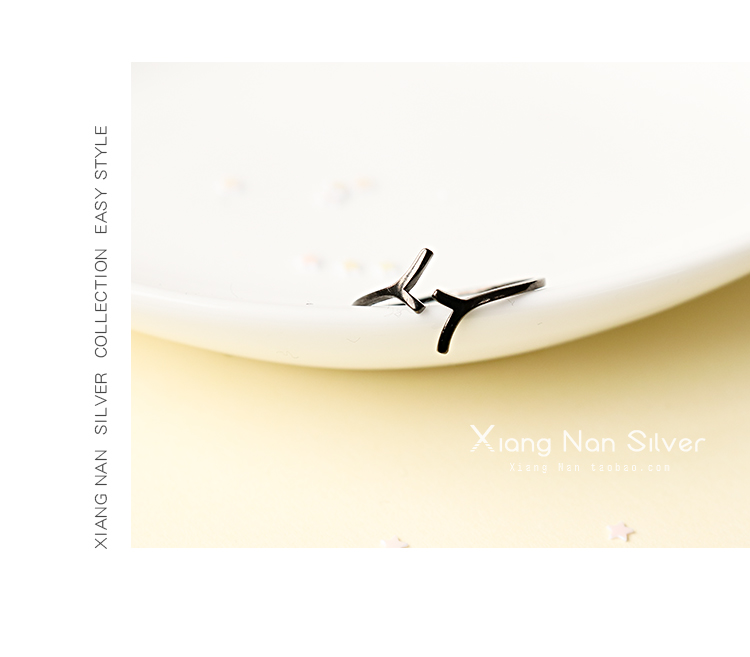 [South Lane] Cây bạc đen đơn giản 925 sterling 丫 nhẫn văn học Nhật Bản và Hàn Quốc chữ Y mở vòng quà tặng nữ sinh viên nhẫn nam Nhẫn