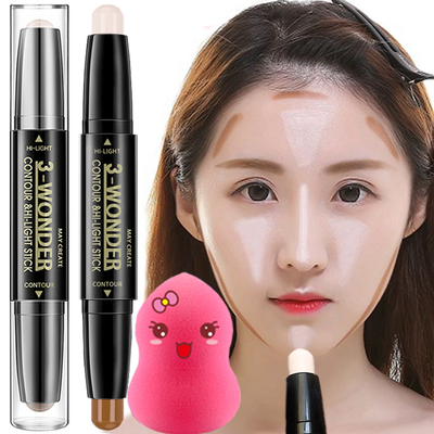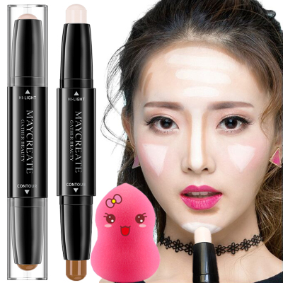 Sửa chữa thanh đôi đầu kép- sử dụng cao- ánh sáng bóng sáng mũi bóng bột không thấm nước lâu dài người mới bắt đầu kem che khuyết điểm nằm tằm bút phấn highlight bắt sáng