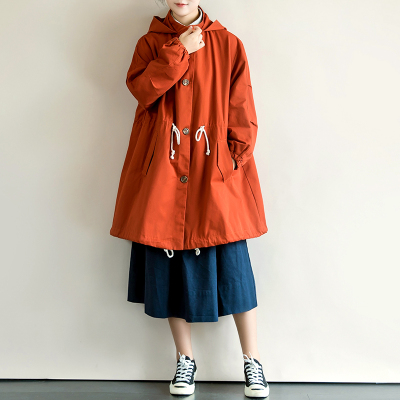 Suji Ange văn học retro Nhật Bản kích thước lớn áo khoác 2018 mùa thu mới lỏng trùm đầu áo gió nữ phần dài áo khoác dạ nữ ngắn Trench Coat