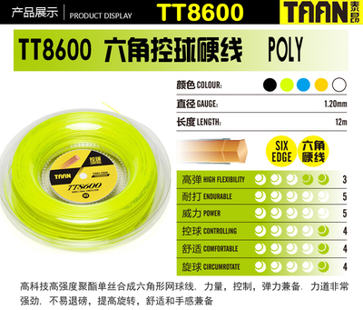 Taan TAAN8600 hình lục giác dòng cứng polyester cứng dòng quần vợt duy nhất vợt tennis dòng kháng để chơi tốt dòng vợt tennis head 275g
