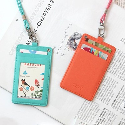 Tại chỗ Hàn Quốc minibus nhỏ tươi màu rắn giao thông da thẻ kiểm soát truy cập thẻ set giấy chứng nhận làm việc thư mục với dây buộc dây đeo thẻ tên