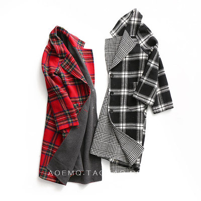Tạp chí M sao với cùng một đoạn! Cổ điển england plaid len hai mặt dài áo len ay1685 áo khoác nhung tăm nữ Áo len lót đôi
