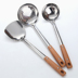 Tay cầm bằng gỗ thép không gỉ thìa chao muỗng nhà dày dài xử lý nhà bếp muỗng nấu ăn xẻng đồ dùng nhà bếp kệ để gia vị