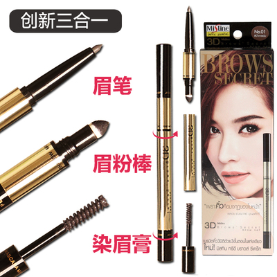 Thái Lan chính hãng Mistine 3D ba trong một bột lông mày bút chì hai đầu kem nhuộm lông mày ba chiều chì kẻ lông mày Bút chì lông mày / Bột / Stick