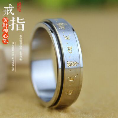 Thần chú vàng Retro Thần chú Người đàn ông và Phu nhân Chuyển nhẫn Nhẫn bằng thép Titan Vòng xoay may mắn Cặp đôi bùa hộ mệnh nhẫn bạc