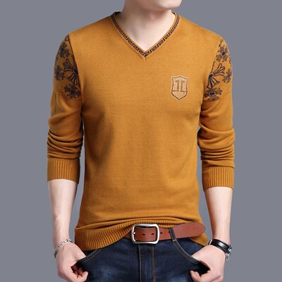 Thanh niên nam áo len cổ chữ V áo len nam tay dài áo thun cổ gà hình trái tim đáy áo mỏng phần rắn màu trung thu xuân trung thu áo hoodie nam Hàng dệt kim