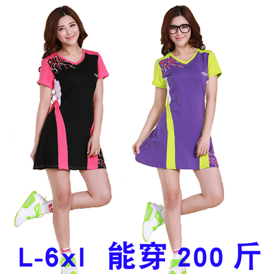 Thể thao ăn mặc mùa hè ngắn tay cầu lông váy quần vợt váy khiêu vũ váy chất béo mm thoáng khí kích thước lớn bông 200 kg quần áo thể thao nữ ngắn
