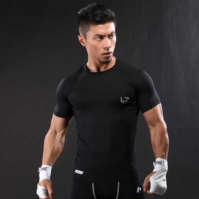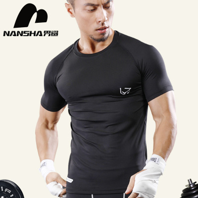 Thể thao ngắn tay áo bóng rổ lỏng lẻo cơ bắp đàn hồi tight-fitting nhanh khô quần áo tập thể dục chạy T-Shirt brother quần áo nam quan ao tap gym Quần áo tập thể hình