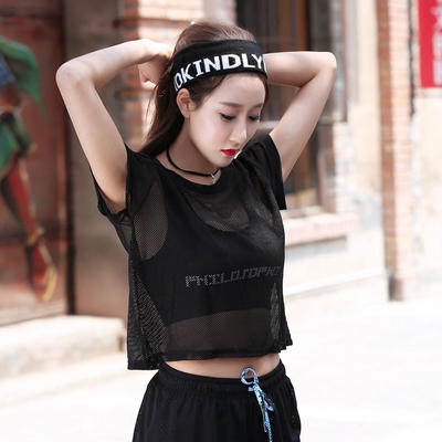 Thể thao T-Shirt áo nữ ngắn tay sexy lỏng đoạn ngắn rốn nhanh chóng làm khô tập thể dục áo sơ mi Hàn Quốc mùa hè chạy quần áo áo thun reebok nam
