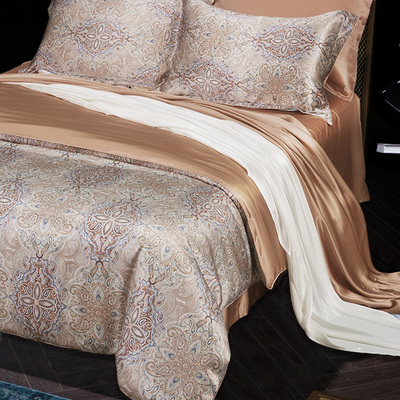 Theo sợi Bella / BOWEINA gia đình bốn 100% lụa tơ tằm in lụa rộng giường gói - Bộ đồ giường bốn mảnh bộ chăn ga gối đệm cưới