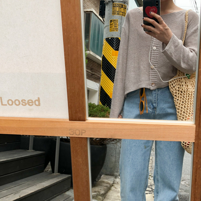 THESUMEY đầu mùa thu mới Hàn Quốc phiên bản của lỏng ngắn cổ tròn đơn ngực phía trước và phía sau hai dài tay áo len phụ nữ áo gile len