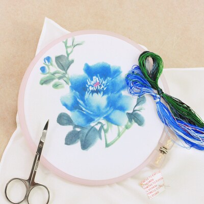 Thêu DIY kit người mới bắt đầu túi xách tay phong cách cổ su thêu DIY người mới bắt đầu khăn tay để gửi món quà đặc biệt của bạn trai khung thêu tròn Bộ dụng cụ thêu