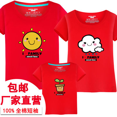 Thiết bị mẫu giáo cho trẻ mẫu giáo 2018 mới mùa hè gia đình cotton ba gia đình đầy đủ mẹ và con gái áo thun nữ tay ngắn shop trẻ em Trang phục dành cho cha mẹ và con