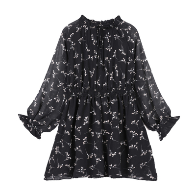 Thiết kế câu lạc bộ 2018 phụ nữ mới của mùa thu dài tay V-Cổ hoa đầm eo voan A-line váy mẫu đầm xòe tuổi trung niên A-Line Váy