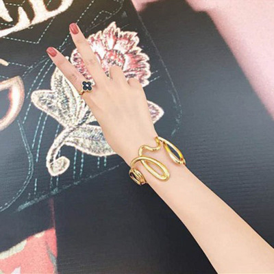 Thời trang Âu Mỹ cá tính Kiểu chữ C kiểu dáng phóng đại kiểu vòng tay nữ trang sức sáng sủa vòng tay đặt vòng tay vàng