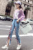 Thời trang ba mảnh phụ nữ Hàn Quốc phiên bản của mùa hè sling tim máy phù hợp với kích thước lớn lỏng quần denim chín điểm lỗ quần áo kiểu nữ đẹp tuổi 40