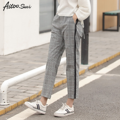 Thời trang giản dị mỏng thẳng quần cao eo hoang dã kẻ sọc chân quần chín quần quần 2018 mùa thu mới quần thu đông nữ